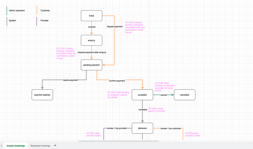 I've done a lot of the hard work for you by replicating two classic transaction flows that you might find in a service-based marketplace like Airbnb - instant bookings (where a booking is automatically accepted by the supplier) and reviewed bookings (where the supplier needs to review and accept/decline each booking request).